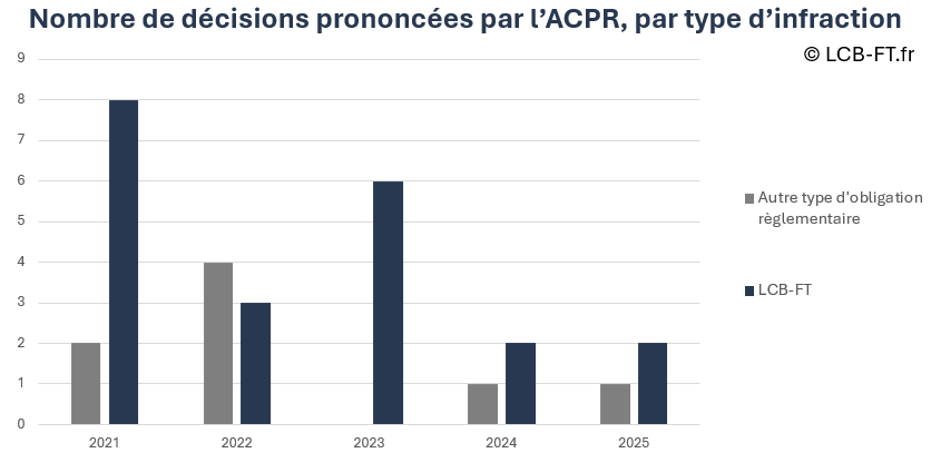 Les décisions de sanction en LCB-FT, 2021-2025. Pour retrouver l’ensemble de nos publications à ce sujet, vous pouvez vous référer à notre article principal.
